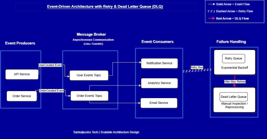 Learn how to design scalable SaaS platforms using multi-tenant architecture, event-driven systems, and cloud-native technologies. Includes retry & DLQ patterns.